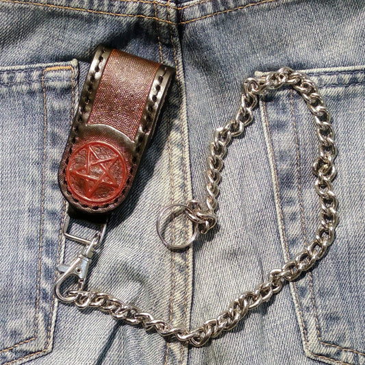 Hand-Carved Pentagram Wallet Chain – Vegetable-Tanned Leather