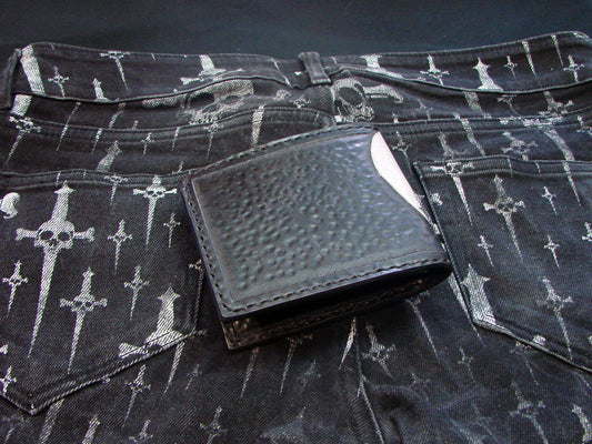 Double Skulls Ace of Spades Men's Leather Wallet – Hand-Engraved Biker Style