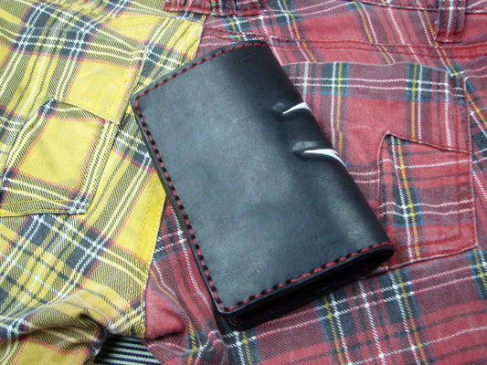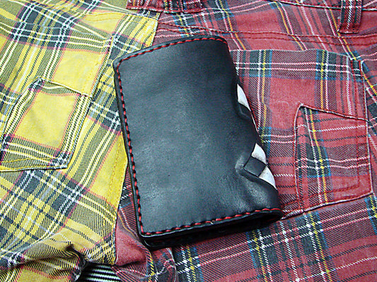 Small Cow Leather Biker Wallet – Hand-Engraved Racing Devil Design