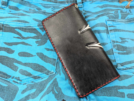 Biker-style pentagram coffin wallet in vegetable tanned leather