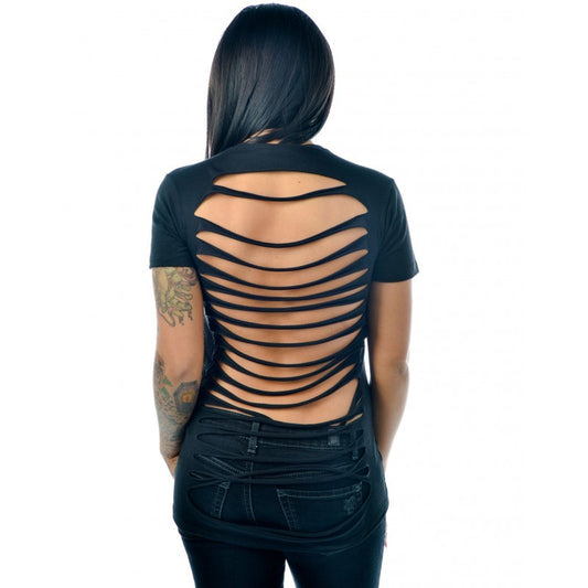 Women's T-shirt Hells Bidding Raw Edge Shoulderless