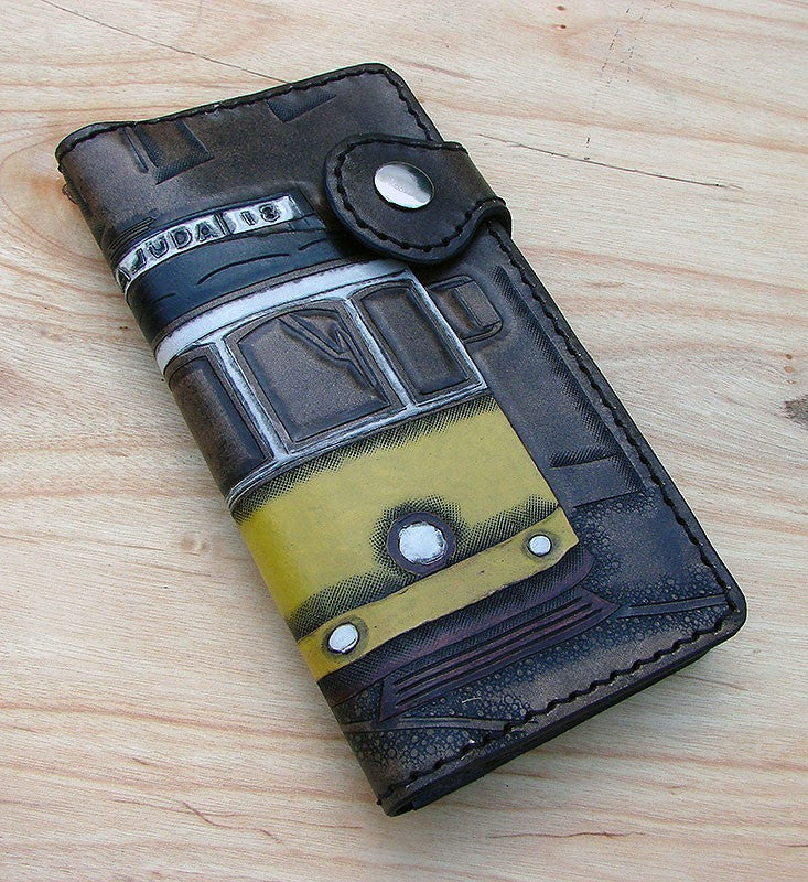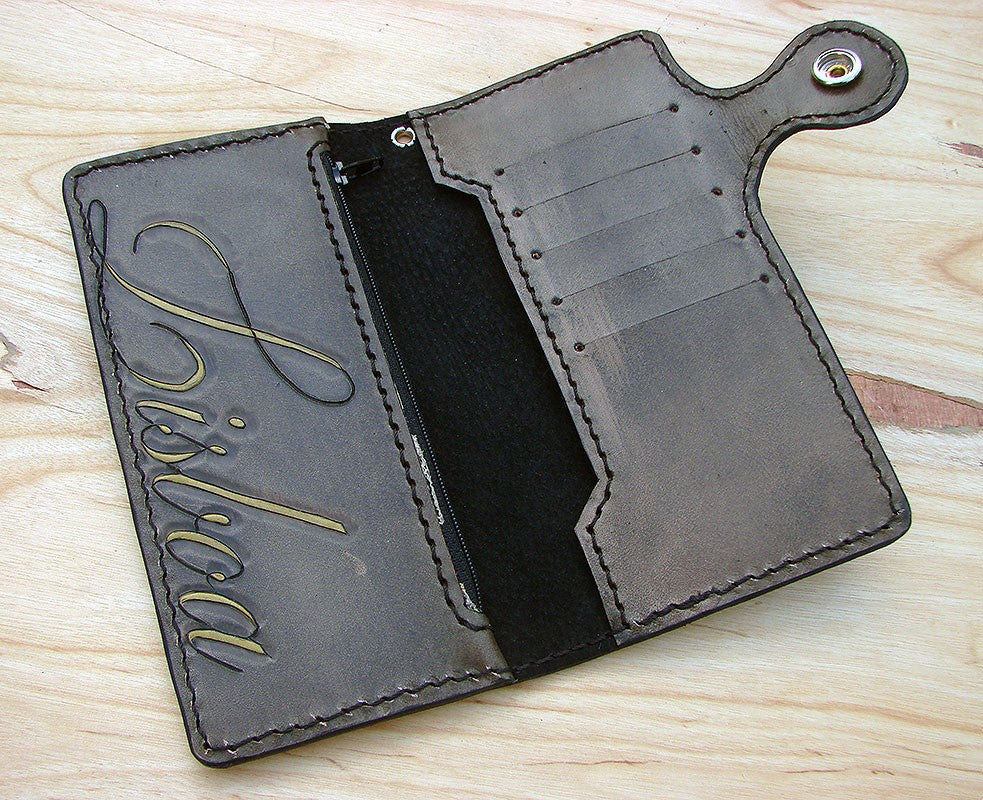 Wallet in cow leather style biker is manufactured by us, has a design engraved's hand embossed with electric Lisbon, has 2 large pockets for notes and documents, five small pockets for cards like ATM and zipped pocket for coins.