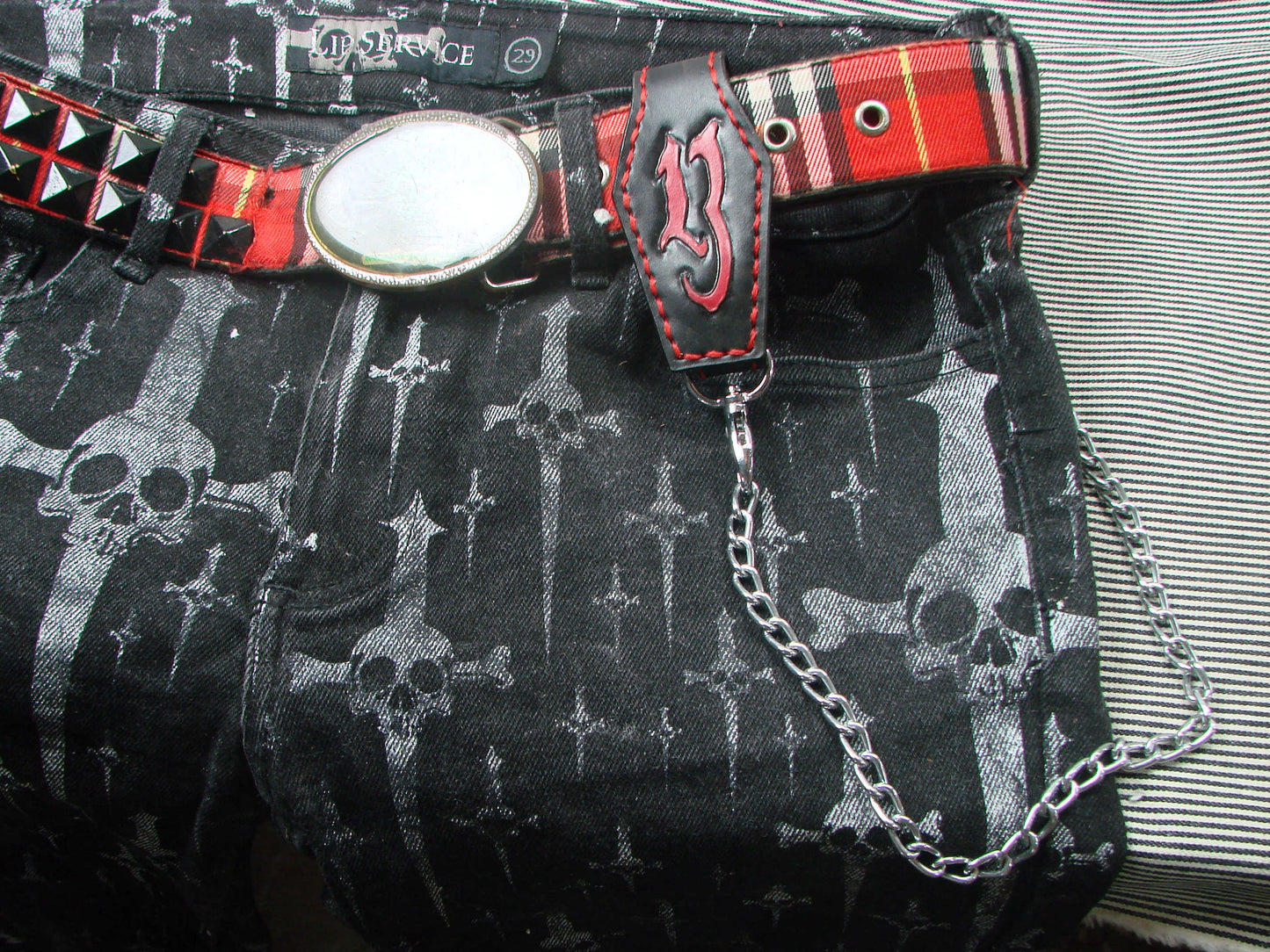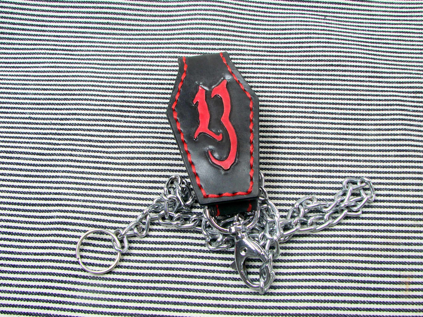 Number 13 Leather Wallet Chain - Hand-Tooled Coffin Shape - Biker Goth Punk Accessory