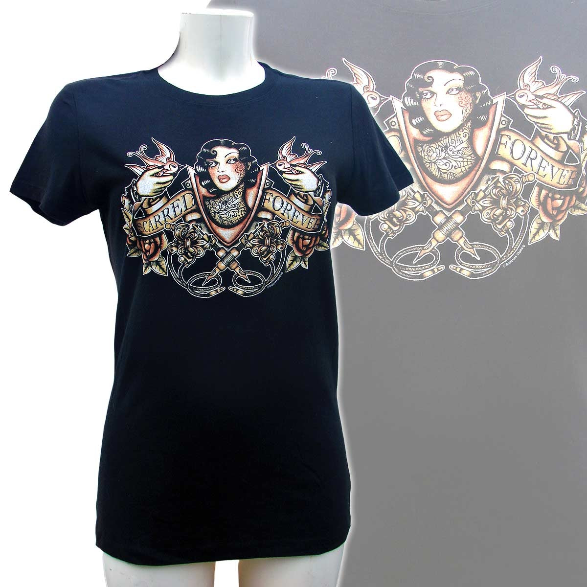 Women's Black T-Shirt Scarred Forever short-sleeved with vintage design, slim type.