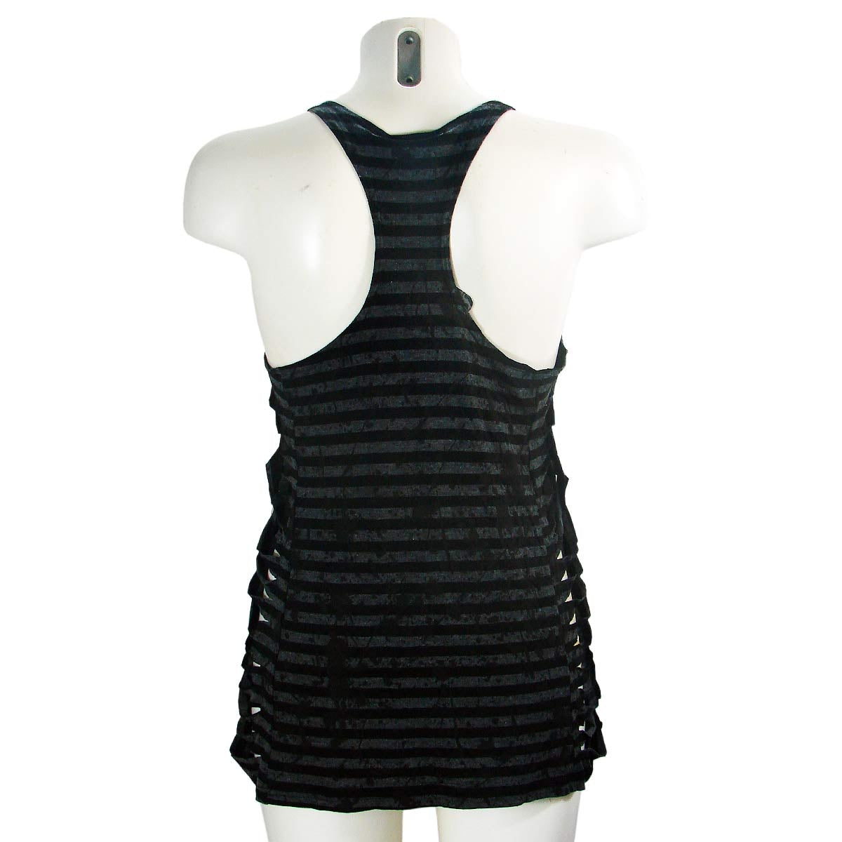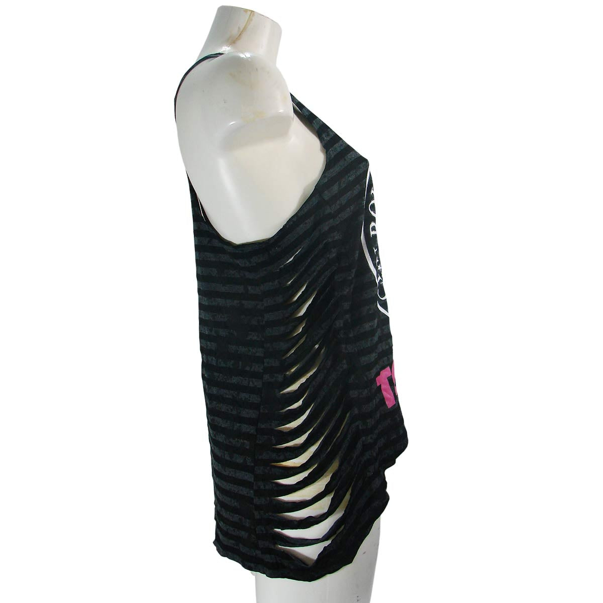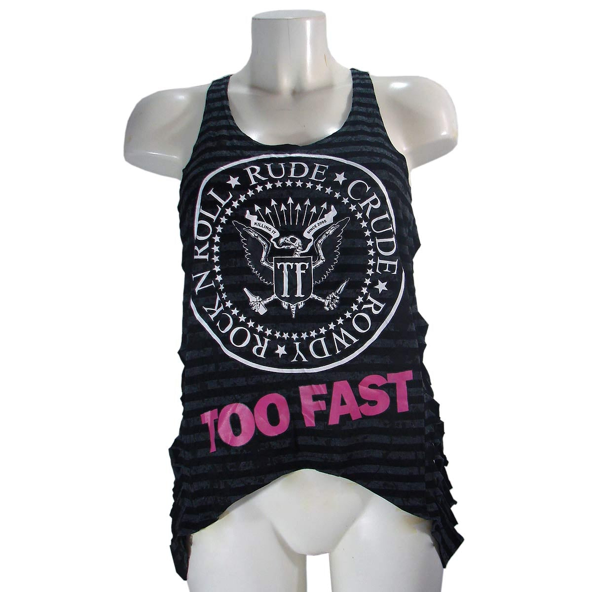 Women's Tank Top T-Shirt Wounded Too Fast Seal, black and grey stripes and slashed sides