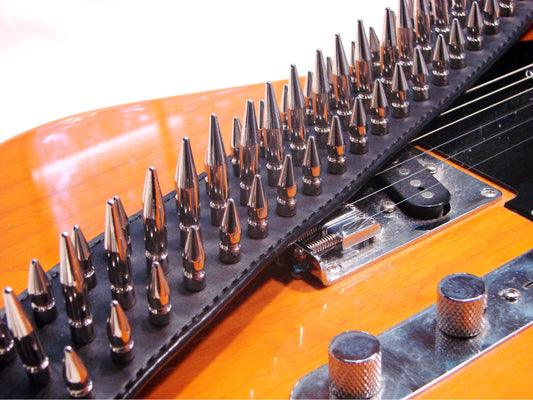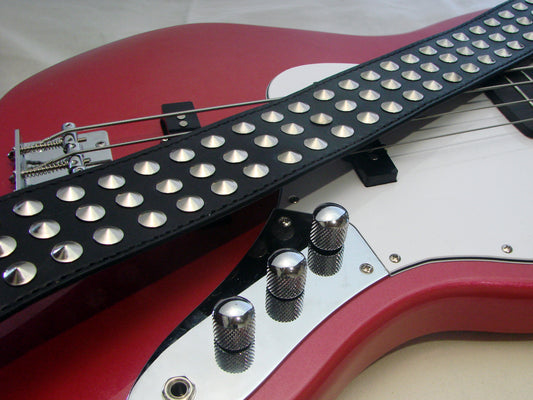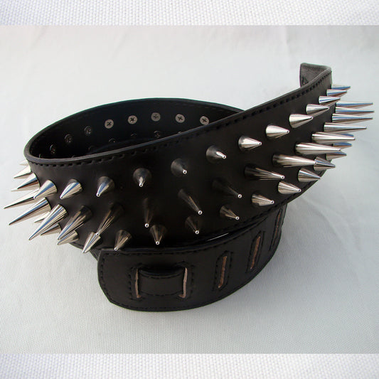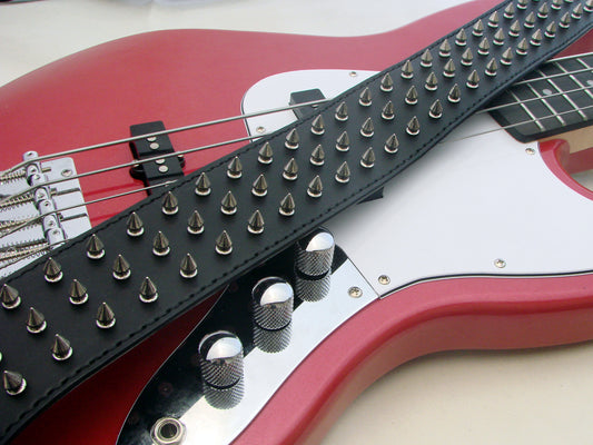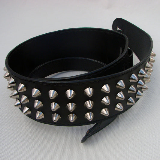 Leather Guitar Strap 3 rows of spikes each 5 mm high