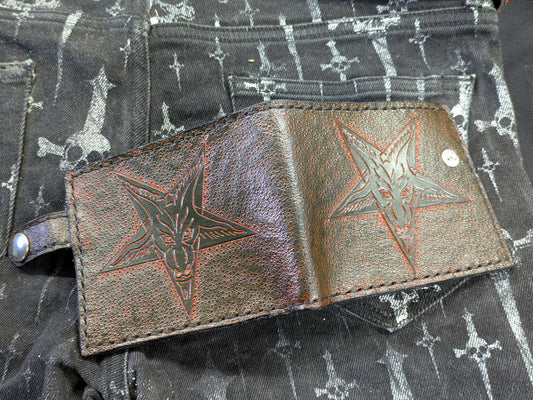 Feitas a partir de couro cru e curtido com tanino, as nossas carteiras e mochilas exalam um espírito rebelde. Cada peça é um trabalho de amor, meticulosamente gravada e costurada à mão com fio encerado de 1mm. Desde caveiras sinistras até pentagramas malignos, os nossos designs são tão ousados e únicos quanto tu. Nenhuma peça é igual à outra, tornando cada uma uma verdadeira afirmação única.