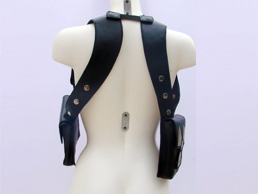 Bolsa Holster Dupla de Couro Entalhada à Mão - Símbolo Radioativo - Colete Utilitário para Festival e Rave