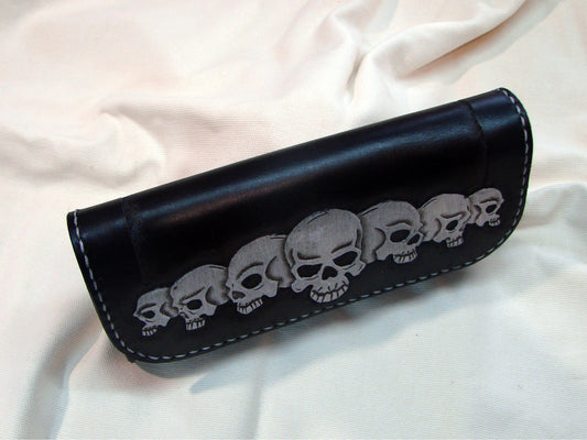 Carteira Bifold em Couro Caveiras Feita à Mão | Carteira Gótica Motard Masculina Única
