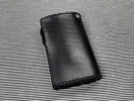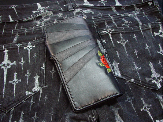 Carteira de Couro Vegetal Estilo Motoqueiro - Ás de Espadas Gravado à Mão - Feita em Portugal