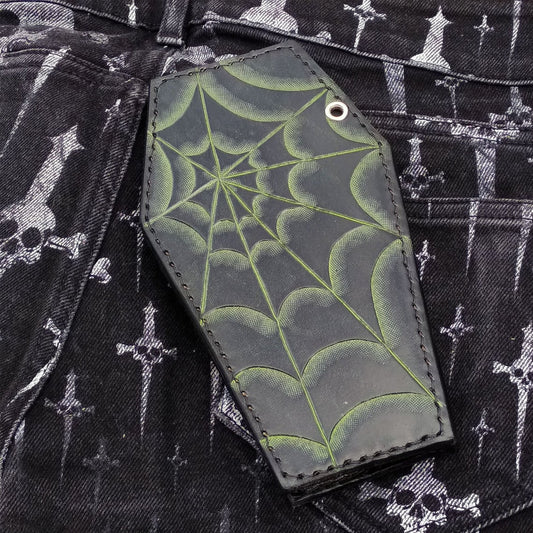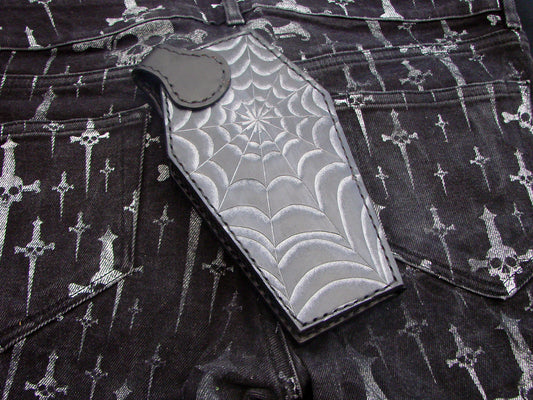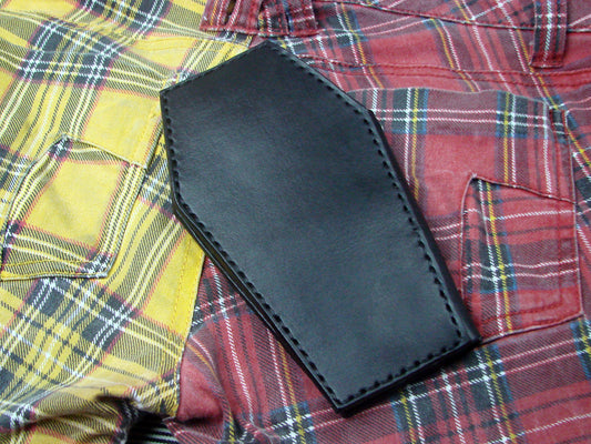 Carteira de Couro Vegetal Gótica em Forma de Caixão - Caveira 13 - Estilo Motoqueiro Artesanal