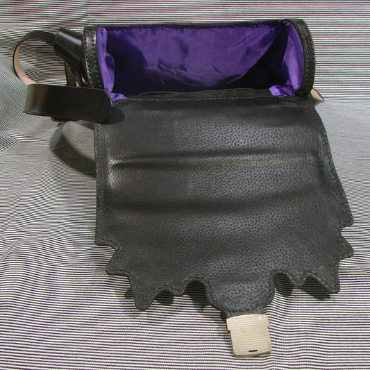 Mala gótica tipo carteiro em couro curtimento vegetal com caveira e asas de morcego