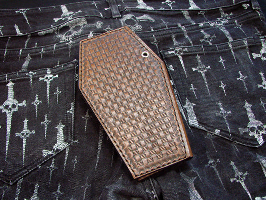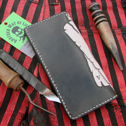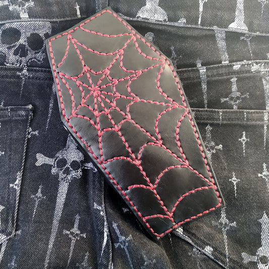 Carteira de couro de vaca estilo caixão de motociclista teia de aranha por Another Way of Life