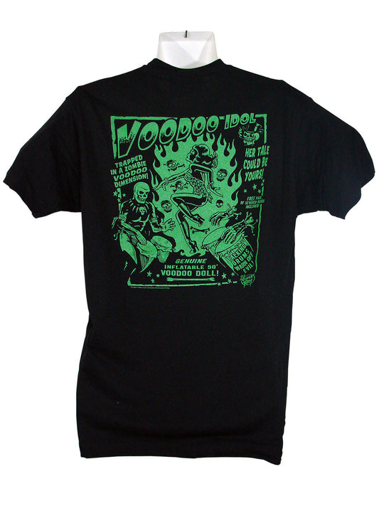 T-shirt preta para homem Kustom Kreeps Skull Voodoo Idol