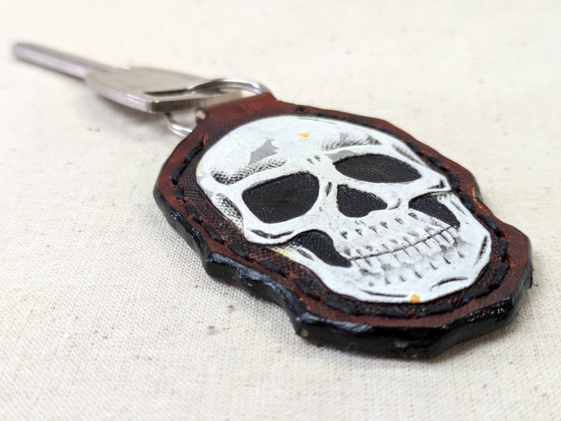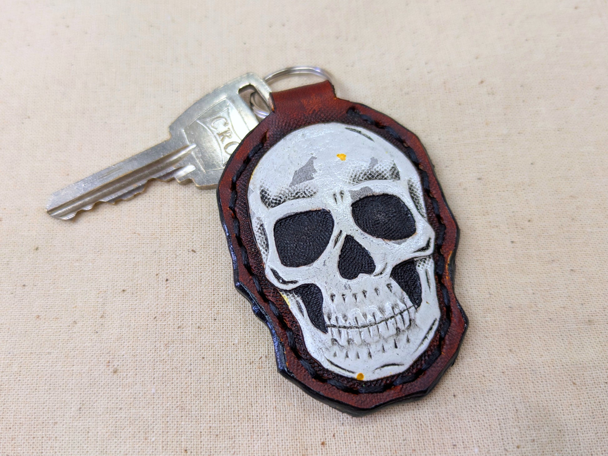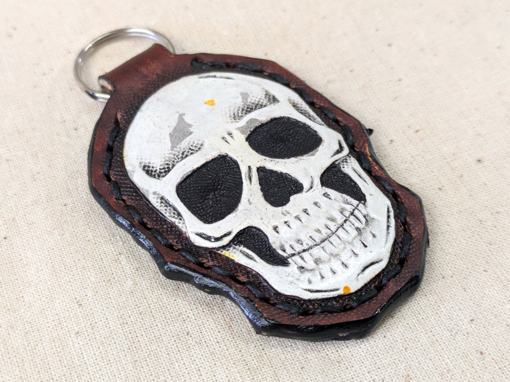 Porta-Chaves de Couro Gravado à Mão com Caveira | Presente Artesanal Único | Opção Personalizada