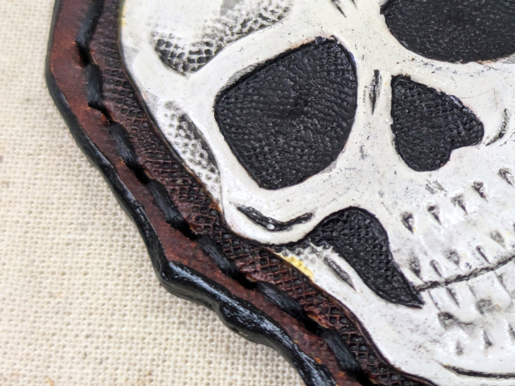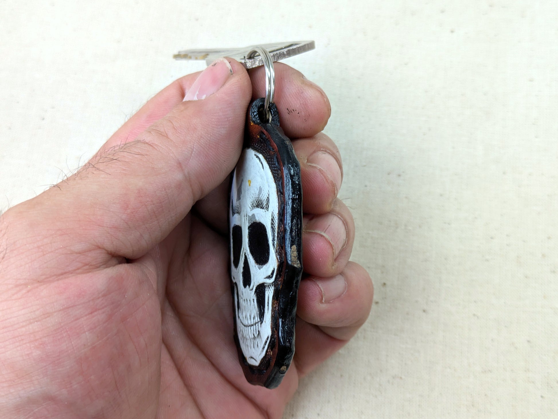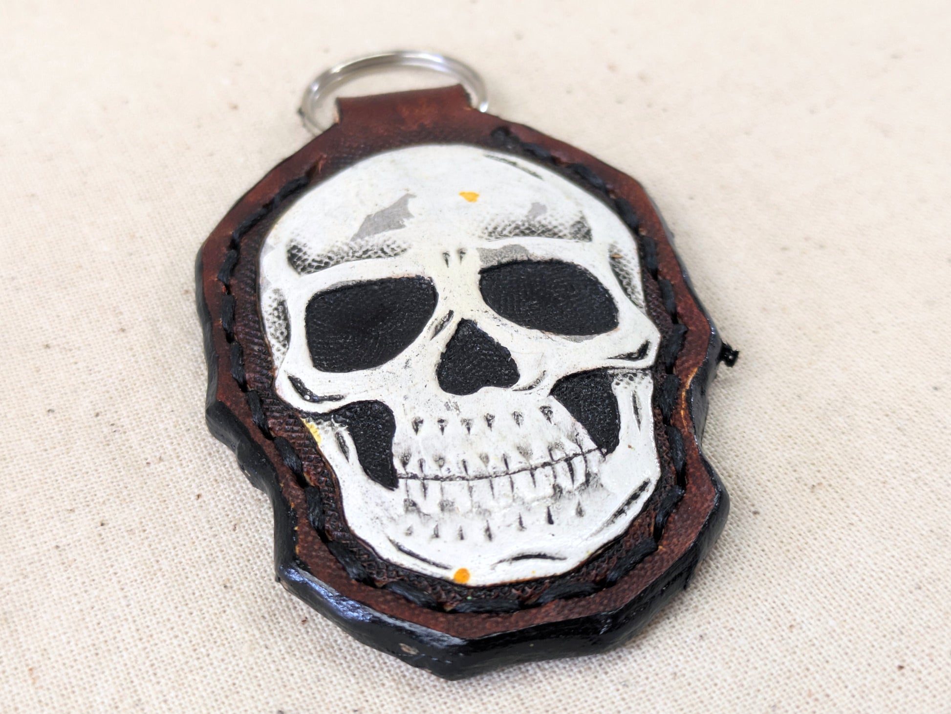 Porta-Chaves de Couro Gravado à Mão com Caveira | Presente Artesanal Único | Opção Personalizada